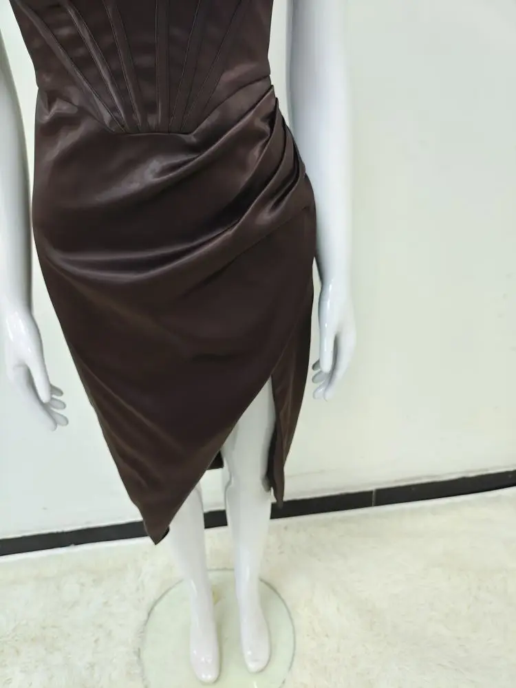 Confeccionado em cetim acetinado com leve elasticidade, ele tem brilho sutil, toque sedoso e um caimento impecável que realça as curvas com elegância.